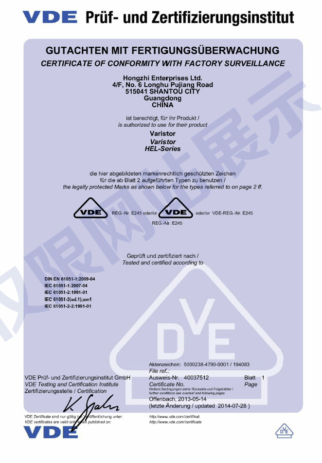 廣東鴻志電子科技有限公司成立于1993年,位于美麗的海濱城市汕頭,現已發展成為元器件制造集團企業,生產壓敏電阻、NTC熱敏電阻、陶瓷電容和金屬化薄膜電容,通過了ISO9001質量體系認證和ISO14001環境體系認證,以及IATF16949汽車產品質量體系認證...